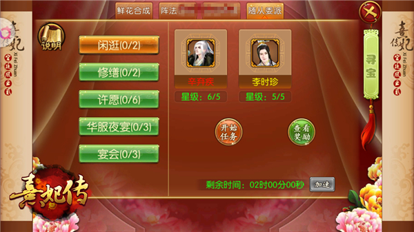 随从委派功能可让小主分配手下随从代替自己前往完成任务并获得奖励。在《熹妃传》的当前版本中,开放了五项可委派任务:府邸互动玩法“闲逛”、“修缮”、“许愿”,时装玩法“华服夜宴”以及宴会玩法。任务的委派对随从的星级与数量有一定要求,例如:府邸闲逛一次需求两名五星级随从。小主设置好满足要求的随从后,即可开始任务。觉得麻烦?亦有轻松无脑的一键分配功能,带小主快速开始任务。(委派任务中设置的随从仍可上阵,小主可无需担心尽情宫斗。)