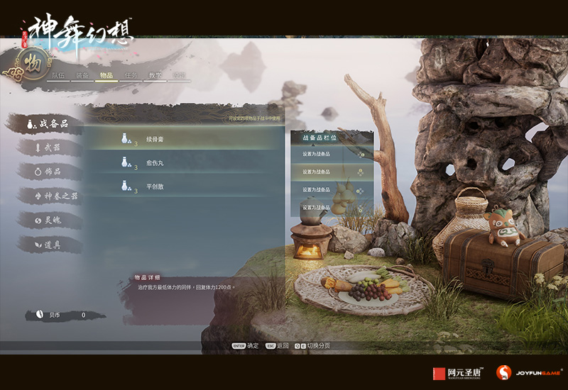 需要特别注意的是,《神舞幻想》的战斗追求策略与时机的操作配合,在按键设置方面打破了传统回合制的鼠标点选出招模式,角色的技能栏及物品栏都仅有四枚按键。换言之,战斗中可选择使用的物品仅有四种,需要玩家们依照经验和自己的战斗风格在战斗开始前安排妥当,否则可能会因带错药品或缺乏某样克敌法宝而面临“大侠请重新来过”的危机。