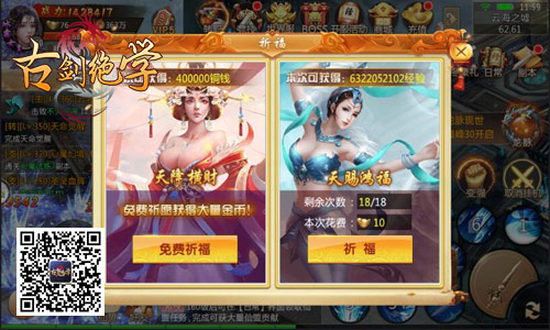 不论你是忙于修仙的大佬,还是闲来无事看风景的小白,都别错过冰河《古剑绝学》中的每日祈福玩法!游戏中,每隔8小时一次的免费天降横财祈福可以为玩家带来40万铜钱奖励,每天最少可免费领取120万铜钱!而天赐洪福玩法则需玩家消耗少量元宝进行祈福,每次100%获得与等级对应的千万经验哦!