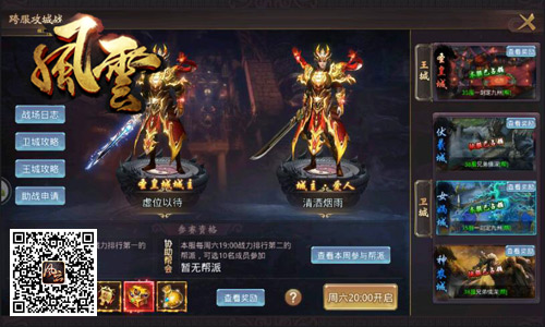 如今“吃鸡”正火,谁不想与小伙伴一起“大吉大利,今晚吃鸡”?冰河《风云志》全新跨服攻城战玩法现已火爆开启,各位玩家大可约上小伙伴一起来跨服吃鸡!游戏中,各大服务器的顶尖帮会将齐聚一堂,共同角逐王城、卫城统治权。成功在攻城战中胜出的帮派不仅可拥有城池统治权,更可向本服所有玩法发放“吃鸡奖励”,每日送出海量城池奖励哦!