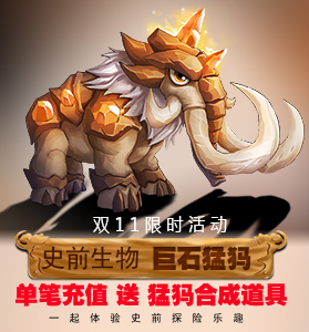 活动介绍:双11活动时间内,单笔充值限时赠送远古象牙(可合成巨岩族泰坦:巨石猛犸),奖励在活动—每日礼包界面领取。限时活动结束后,活动恢复赠送狐灵面具,详情请查看游戏内活动介绍。