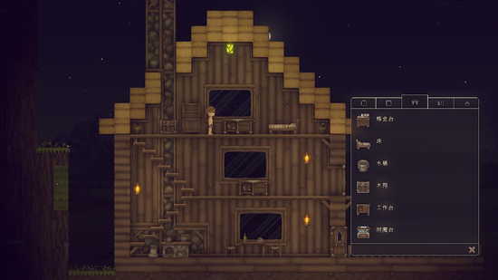 要致富,先撸树,要生存,得挖坟!虽然一身空空,但你是个魔法师,你可以用双手来创造一切。按住鼠标右键开始采集吧,砍树能让你获得制作工作台的材料“原木方块”,而工作台又是用来合成装备、杂物、墙体、家具等各种道具的重要工具。如果你不小心挂掉了,身上的物品会掉落并在死亡点生成一座墓碑,只有挖坟才能让你恢复全部道具。