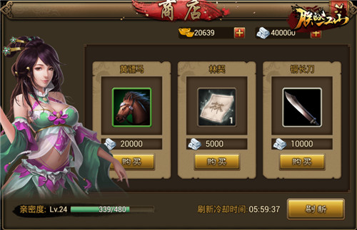 橙装最直接的来源是银两购买,就是不断和小玉打交道、刷商店。刷过的朋友都知道,出现橙装的概率很低,只有不断的刷亲密度才能提高橙装的出现几率。而且购买一件橙装需要20万银两,这可不是一笔小数目。所以在刷新的过程中,各种地契不能忽略,其中“林契”是稳稳的赚,看到就秒杀掉。这些地契就像网络店铺中的打折票,一定要抢到哦!