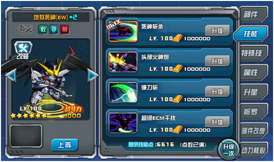 必杀技“死神斩杀”能够直接攻击对方耐久值最少的技能,在一定条件下可达到将其立即击破的效果,即便是命硬指数MAX的肉盾,都有可能瞬间成为地狱死神敢达(EW版)的刀下亡魂;