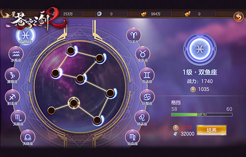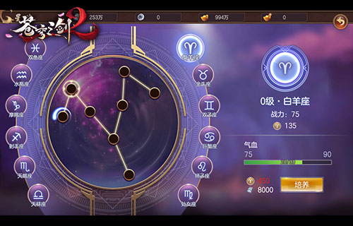 《苍穹之剑2》首创星座玩法,星运、星语、星魂系统等趣味内容均囊括其中。在进入游戏时,玩家可设定自己的星座,进行星运占卜,获得道具奖励和随机增益效果。其中,星魂系统还能为修行者提供额外的攻击、气血、防御等属性加成,带来战力飞升。你可以根据职业特点,选择最佳属性提升至最高,也可选择均衡发展,做到攻守兼备,一切皆有自己做主。