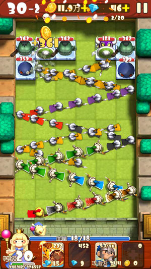 在砖块上,乐卓网络将它们全部设计成了怪物的形象,配合城堡上的公主,形成了对立战斗的感觉;而子弹方面,他们更是做了大胆的改进,将原本射出的子弹变成了一个个小小的骑士,并且骑士也不再是一个个发射,而是变成一连串的射出。这样在游戏后期骑士多了后,我们看到的就是整个游戏画面中,充斥满了冲杀碰撞的骑士,魔性十足,一上手就让人根本停不下来!