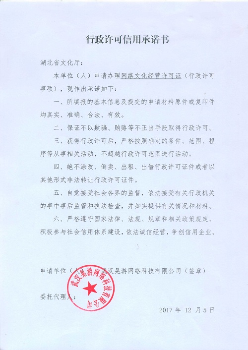 根据湖北省文化厅和武汉市文化局相关规定和要求,我公司现做出如下承诺: