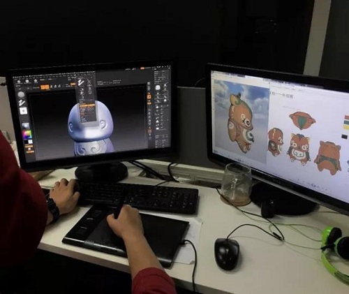手稿方案确定之后,会交由3D设计师进行建模。建模过程中,设计组针对3D模式下产品呈现的每一个细节再次反复的推敲和调整。游戏中的游戏建模无需考虑现实的物理和材质,因此设计师必须在游戏元素和现实效果中间取舍,进行二次设计和创作,使周边既符合游戏设定,在现实中也能保持其憨态可掬的形象。