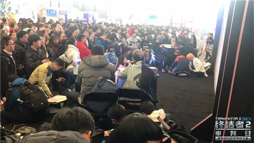 在《终结者2:审判日》展台区域,官方还为游客准备了专门的试玩区,许多游客在围观了大屏幕上的游戏演示之后直奔试玩区排队体验。还有部分流量多任性的游客当场扫码下载游戏,投身开黑大军。