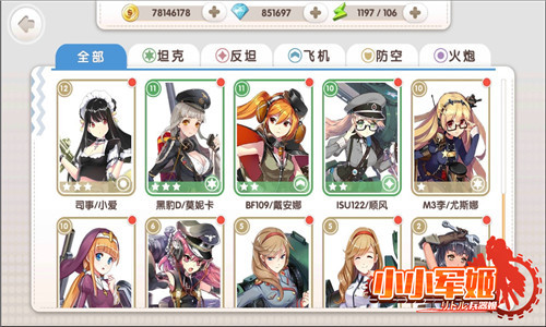 令人眼花缭乱的军姬通过兵种进行分类,总共有坦克、反坦、飞机、火炮、防空炮五种类型,通过名字或许已经有聪明的司令官发现了是相互克制的关系,所以通过合适的搭配可达成以下克上不可能任务。