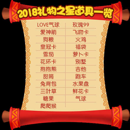 在2018年开始的时候,我们将对游戏中“荣誉榜-礼物之星”中的部分内容进行调整: