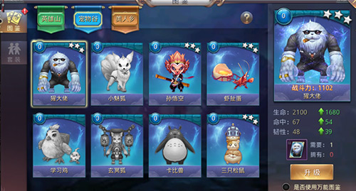 当然,为了丰富玩家们的收藏,《昆仑墟》图鉴系统还加入了宠物谷的一帮萌萌哒的战宠,有猩大佬、孙悟空、虾扯蛋等等,每激活其中一个图鉴都会直接给道友们带来上千战斗力的加成,获得图鉴后还可以对图鉴进行升级或者激活图鉴套装,可额外全方位的提升属性!