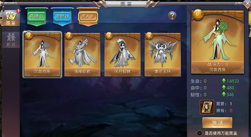值得一提的是,在众多图鉴当中最“值钱”的当属美人乡里的四大仙子,西施、昭君、貂蝉、玉环,无一不是风华绝代的尤物,激活其中任意一位,都可以获得上万的战斗力加成,让玩家获得叱咤风云的力量!谁说江山与美人不可兼得?