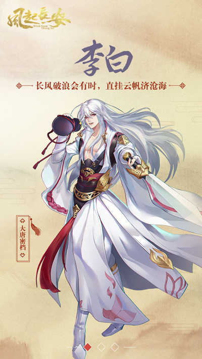 近日官方放出了李白与长孙无忌的立绘与人物设定,ACG画风的立绘人物引起了玩家的热 烈讨论,同时两个人物的脑洞设定也吸引了玩家的注意。以盛唐为背景,半架空历史事 件的《风起长安》中,李白虽为诗仙,却有口吃,唯有吟诗作对之时才不会结巴,而看 似完美无缺的美男子长孙无忌,实则有绝对音感,无法忍受一丁点杂音,所以每次用指 甲去刮北冥外的龙凤玉珏便可将他召唤出来。这样趣味的设定也给了玩家不一样的新奇 体验~