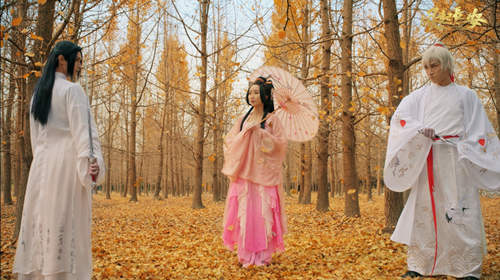 电影《妖猫传》以盛唐为背景,讲述了一段繁丽奇幻的盛唐故事,与《风起长安》的故事背景极为贴合,因而在电影首映之日,《风起长安》在全国十二城近百家电影院投放 了数十万场次的《妖猫传》映前广告,旨在给予观众和业内最惊艳的亮相。广告别出心 裁的采取了真人cos拍摄的形式,由阴川蝴蝶猪、阿逝和唐唐等三位coser,在明黄漫天 的银杏林中上演了一场“不一样”的江湖故事。