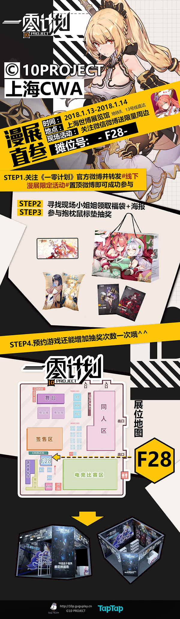此次1月13日~1月14日在上海世博展览馆举办的CWA漫展,《一零计划》特别搭建了科幻感十足的主题展位,同时两位超萌coser小姐姐将以游戏中最受玩家喜爱的两个少女英雄形象与大家见面,与一同作战的她相遇在真实世界,一起记录下这段难得的美好时光吧!