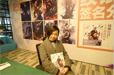 2018年1月14日,插画师、概念艺术设计师纹银在成都进行十年画集《镜花水月》签名分享会暨加盟天纵世纪。