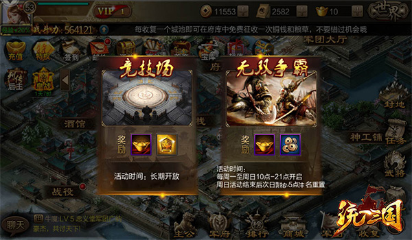 汇集名将招募、发展内政、实时国战、争夺皇位、后宫养成、经典战役、封地建设、武将切磋、巅峰对决等诸多特色玩法!万人在线攻城掠地,还原经典狼烟战场。体验自由国战,成为一代枭雄,创立丰功伟业!《统一三国》带你重温经典,维系三国情结,回归烽火连天的忠义时代!