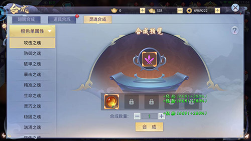 合成系统不仅可以合成翅膀及道具,还可以将灵魂进行合成,玩家需要收集合成材料来进行合成,不同的灵魂需要消耗不同数量的材料。同时需要告诉大家的一点就是,灵魂合成是为定向合成,在此过程中是不需要消耗金币的哦!尽情去合成吧!