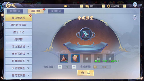 《莽荒纪2018》中的道具合成系统可以合成三种类型的道具,副本门票、宝石材料以及三个职业的套装石。门票的话可合成经验副本-狱山传送符、洗炼副本-星辰殿传送符以及套装石boss场景-虚无印记,刻印宝石的话需要消耗烙印符这种材料,装备套装石可以通过消耗套装石碎片来进行合成~