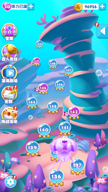 滑动手指即可以切换关卡场景,畅游在海底的各种美景中,探索海螺小径、珊瑚礁群、海底峡谷、海葵大道,揭秘海底沉船、海底冰山,还有更多有趣的玩法等你来挑战。