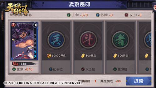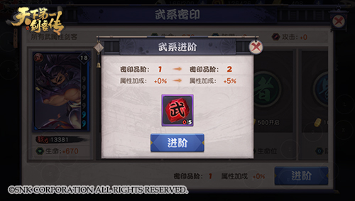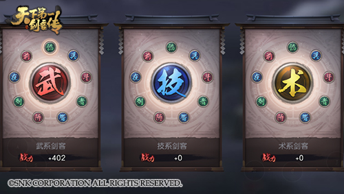 密印玩法一共分为武、术、技三系,每一系密印可以放入对应系的剑客,这名放入的剑客会为玩家该系的全部剑客提供基础属性加成。每一系又分为生命位、防御位、攻击位等多个位置,每个位置开启后都能配置一名剑客,根据该剑客的战斗力来提供对应的属性加成。武、术、技还有对应的密印进阶道具,可以提升该系的密印品阶,品阶越高能够提升的属性越高,而且是以百分比来提升!