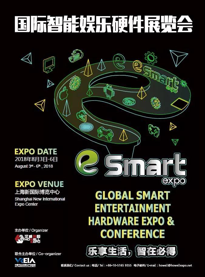 由ChinaJoy主办方汉威信恒与中国VR/AR娱乐产业联盟(VREIA)联合主办的第三届国际智能娱乐硬件展览会(eSmart)将于2018年8月3日—8月6日在上海新国际博览中心举行。