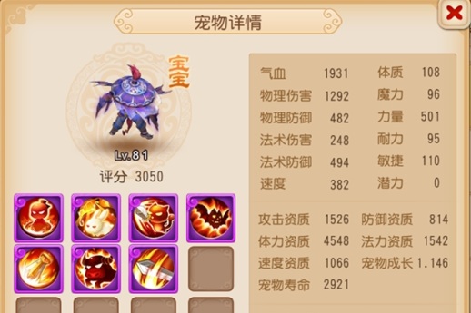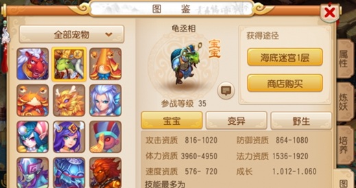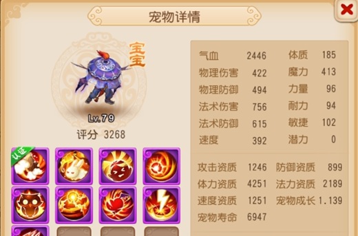 龟速宝宝的要求相比来说极端而又偏低,成长可以不高,体资防资能看就好(当然越高越好),但是速资一定是越低越好,甚至为了速度慢可以让宝宝等级不要升的太高。