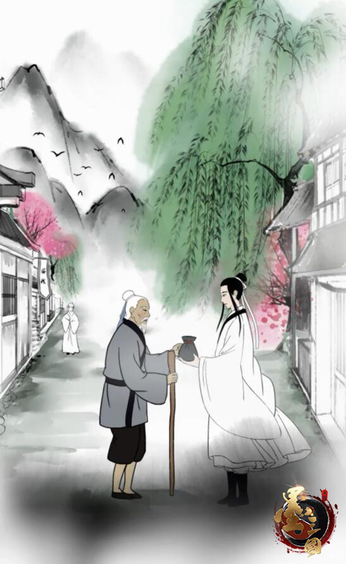 再睁眼已经是一个人声鼎沸的集市,书生遇见一个摔倒的老人,把他扶起来后,看他饥饿非常,便把手里的两个包子送给他充饥。