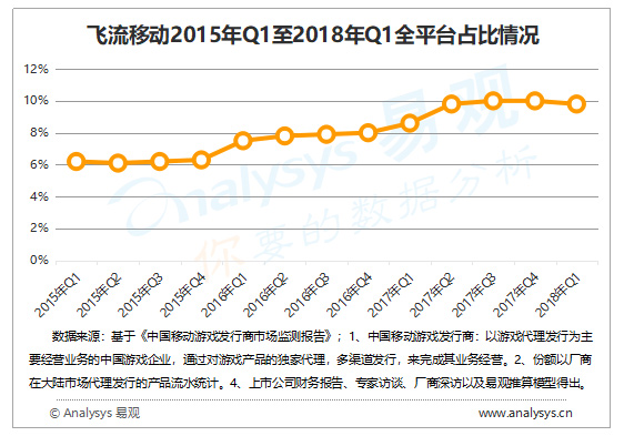 根据Analysys易观数据,在2015-2018期间,飞流移动在中国移动游戏发行商市场份额排名中长期保持着稳定上升的状态,在最新发布的2018年第一季度排名中位列第五。作为中国移动游戏发行市场的重要参与者和推动者之一,飞流移动还将持续提升其综合竞争力,依靠品质导向的研发架构与现有成熟的发行运营体系,融合形成更为完善的内部生态链条,继续为用户带来更多精品游戏。