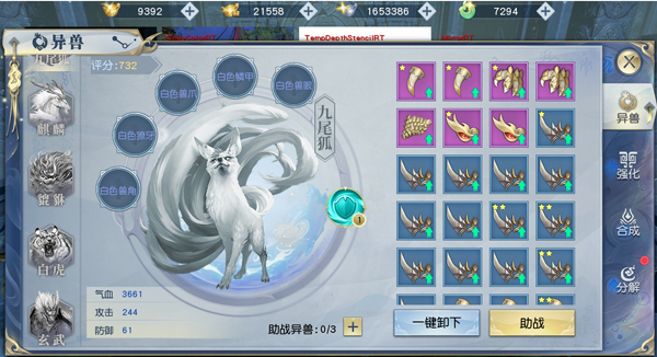 而手头拮据的道友,则可以考虑一下九尾狐、麒麟这种比较容易激活和培养的异兽,首先将战力提升起来,到后面资源更加丰富时再进行更换。