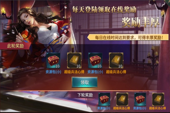 “在线奖励”活动伴随第二剧本开启,主公每日登陆游戏,在线时间满足要求,即可领取丰厚奖励,在线奖励供六轮,主公一共可以领取六次!小墨鱼已经领到手抽筋了,主公还等什么!
