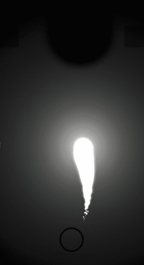 滑动屏幕,带动了光斑的走向,开始探索满屏黑暗的手机屏幕,像蜡烛一般,走到哪里,哪里才有光,亲身探索的紧张感,骇人心魂。