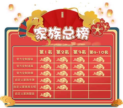 在活动结束后,累积获得“热闹指数”最高的前十名家族可为家族赢得额外特权,具体奖励如下所示:
