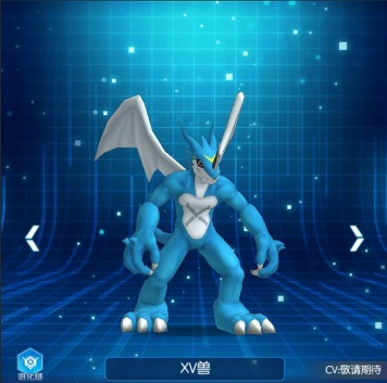 由V仔兽进化的成熟期幻龙型数码宝贝。XV兽是V龙兽的原种,。其发达的臂力和足力施展的攻击力非常惊人,如同山一样的岩石也能破坏殆尽。