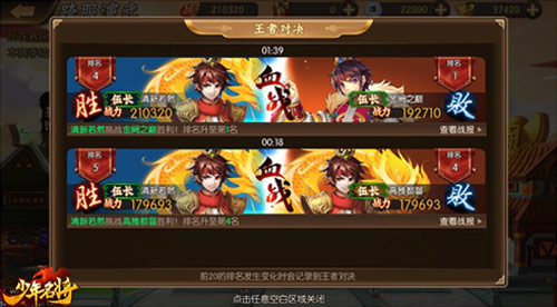 《少年名将》全新跨服战今日开启,想要获得至高无上的荣耀,将自己的名字永久留在英杰榜么,那就赶紧提升你的战力,参加跨服激斗,成为斩杀众位少年豪杰的最强王者,赢取更多购买专属商城稀有资源的机会,冠绝中原。
