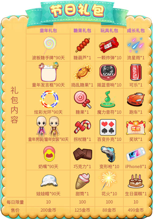 3. “童年礼包”中的“童年男装/女装”按性别获得。
