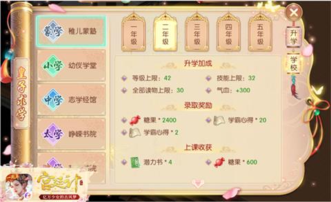 今日学堂玩法上线,皇子们正式开启全新的人生阶段。如同现实生活中的小学、初中、高中,学堂玩法也为各个等级的皇子设定了对应的学习阶段。入学时,小主们可以自由选择班级,让自家皇子与好友皇子成为同班同学或许是不错的选择。学堂中包含了文化、艺术、体育以及自然四大类的近百种课程,以及丰富多彩的社团活动,蹴鞠剑道、琴棋诗画都能样样精通。一起养成德智体美全面发展的“三好学生”吧!
