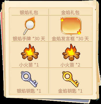 点起篝火,奏响音乐!活动期间,“银焰礼包”(售价100金币)和“金焰礼包”(售价200金币)限时出售!