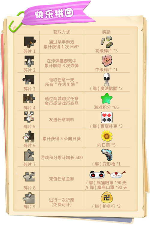 拼图碎片获取方式: