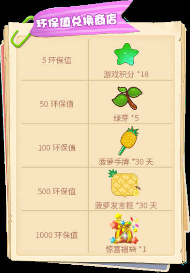 活动期间,只要环保值累计达到指定数值,即可领取对应奖励,每种奖励只能领取一次。