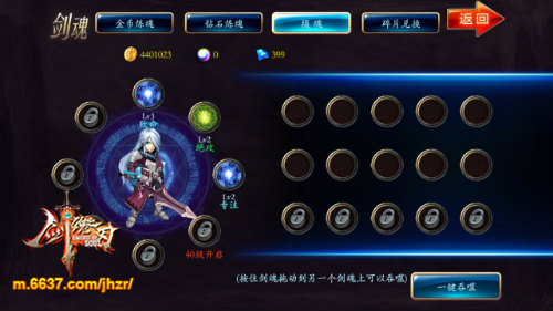剑之灵魂,绝强提升。在6637手游《剑魂之刃》当中,对于召唤师们来说,存在着多种多样的剑魂,不同的剑魂可以为剑士们带来不同类型的属性加成,包括生命、物攻、物防、命中以及闪避等等。此外,剑魂还有着品质的高低之分。剑魂的品质一共可以分为四大层次,包括绿色剑魂、蓝色剑魂、紫色剑魂及金色剑魂。其中金色剑魂可以为剑士带来的属性加成最多,不过同时金色剑魂也最难获得。