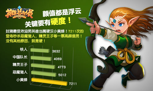 首测“最受欢迎男英雄”当属硬汉小黄蜂!7211次的登场次数秒杀精灵王子等一票高颜值男英雄!究其原因,没有其他,就是硬!
