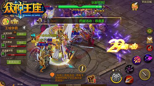 《众神王座》今日14点开启安卓跨服战,让刺激的同图激战式RPG变得更加血腥!《众神王座》独创的装备位强化系统,一次强化终身受益;独有的坐骑装备培养系统,将坐骑打造成不可或缺的战斗伙伴;令人眼前一亮的法师闪现技能,让法师的招牌技能首次在手游完美再现;除次之外,还有跑商系统、副本系统、世界BOSS等等玩法。