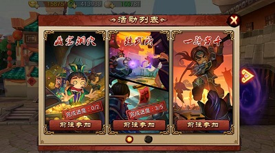 除了诙谐的剧情副本可以让玩家畅快打斗之外,《唱吧三国》中还有许多活动玩法,让玩家不会在推图过后产生厌倦和疲劳。一骑当千,名将遭遇战,或一战成名,或虽败犹荣,可邀请好友辅助,亦可自己继续努力,成功击退名将后,玩家可获得武将碎片或用于兑换武将碎片的功勋币,实属玩家收集武将的另一条捷径;藏宝洞穴,带上最强输出阵容挑战上守财魔,伤害值越大,掉落金币越多,谁说收集金币不易,或许是战力太低;练武所,每周单双日分别开启,玩家需要根据敌方武将技能,选择物理输出或是法术输出阵型,以克敌制胜,提升策略头脑;更有世界boss等精彩活动供玩家选择,乐趣多多,奖励多多。