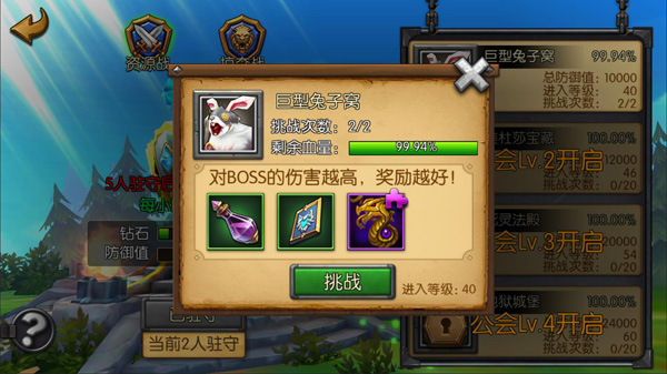 一个人玩终会觉得寂寞,一群兄弟在一起战斗才更有乐趣。新版本中,公会系统的上线,就满足大家团战的愿望。其内容相当完备、全面,除了创建、管理等基本功能外,公会成员可以一起攻打公会BOSS、与其他公会进行资源争夺等,为壮大公会一起努力。同时,玩家还可以进行公会捐献,公会的活跃度、等级都与玩家的热情参与分不开,玩家还可以在公会专属商店购买战斗物资。有趣的是,借鉴目前网络流行玩法,公会内还可以互发红包哦,大家都有机会收到从天而降的钻石呢。