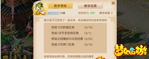3k玩《梦幻西游》手游的系统每天都会指派给师徒定额任务,需要师傅使用100点活力发布,徒弟当天完成之后上交任务,双方均会获得经验、银币以及物品奖励。师傅一方的教学成绩也直接与每日任务完成程度挂钩。与上述师徒共同任务有所不同的是,师傅只管发布,而徒弟只管完成。这只是最基础的做法。深一层的做法,是师傅要指导徒弟如何高效率完成徒弟方任务,从而也能让徒弟对你这个师傅感到心服与关怀。师傅发布任务后就撒手不管,那其实是在放羊,而不是在教导徒弟。题外话一句,考核任务最好也能全数完成。