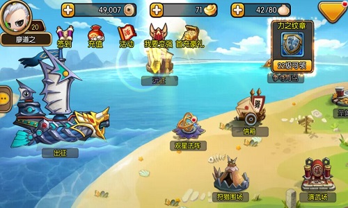 《三国志海战》作为一款主打海战以及弹射的手游,衍生出了众多特色趣味玩法,如狩猎围场、远征系统、演武场、争夺海岛等等,可以通过这些玩法收获大量的资源去建造船只武装武将,并且可以在这些玩法中感受到弹射的魅力,享受游戏带来的原始乐趣。