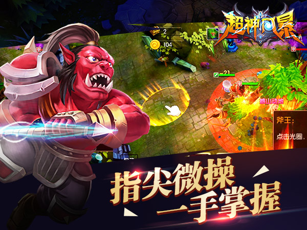 《超神风暴》是一款真正意义上的3D SRPG实时对战手游,游戏完美承袭了PC端DOTA和LOL的玩法,采用了匹配式的实时联网对战模式,使用了欧式的画面风格,Q版的人物形象,最大化精度的模型和粒子特效,精心淬炼出一款团战竞技的史诗级传奇游戏!即时对战,一发超神!MOBA竞技,一手掌控!战斗革命,一触即发!点击屏幕,自由移动,英雄想去哪就去哪;拖拽技能,自由施放,MOBA玩家慧眼识英雄。风骚走位秀全场,残血补兵抢人头!炫酷的技能效果,史无前例的指尖操作,给你最佳的游戏体验,《超神风暴》,等的就是你!