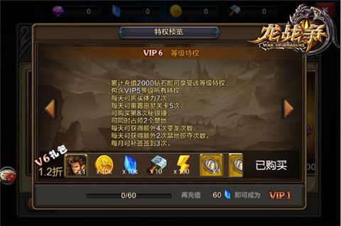 为庆祝《龙战争》V1.2.0新版上线,多个游戏活动同步开启!成长基金现已开放,玩家购买基金后最多可获得多达六倍的钻石回馈,与此同时VIP礼包、神恩值双倍活动也已开放,不仅有丰富的合成材料等你领取,双倍神恩值更让轻松获得更多稀有金卡哟!还等什么,快快加入吧!